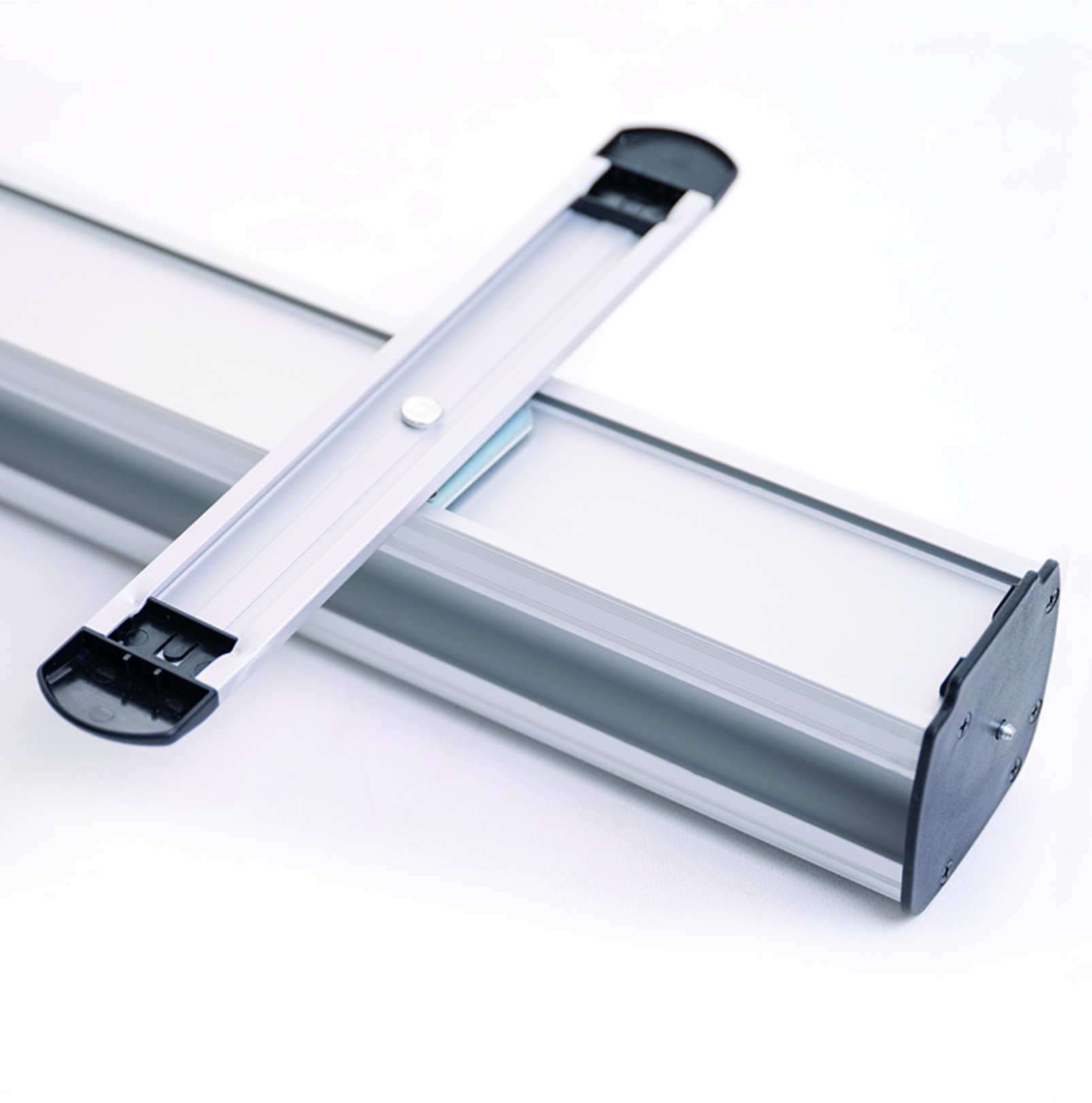 Preiswertes Roll-Up-System für kurzfristige Messen und Promotions. Mit eloxiertem Aluminiumprofil, abgerundetem Standfuß und verdeckter Aufhängung bietet es Stil und Funktionalität. Inklusive Transporttasche. Perfekt für Innenräume, passt zu verschiedenen Materialien.